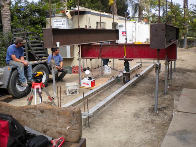 Load testing an augered pipe pile for liquefaction mitigation. Proposed project is a residential addition along the Grand Channel in Venice, California.